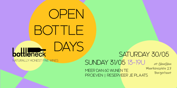 Op 30 en 31 mei verhuist Bottleneck.be even naar GlouGlou in Borgerhout. We zetten de tafels vol met alles waar we zelf enthousiast van worden: van strakke zomerwijnen en zwoele witte wijnen tot karaktervol rood en eigenzinnige bottelingen.